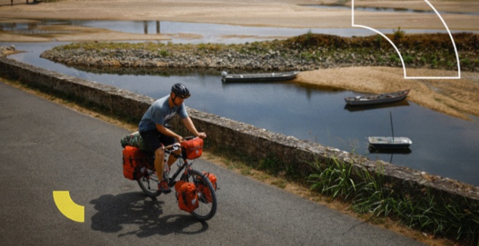 A cyclist rides near a branch of the Loire River as historical drought hits France, in Loireauxence, France, August 16, 2022. REUTERS/Stephane Mahe
