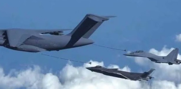 وأظهر فيديو رسمي كيف تقوم YU-20 بإجراء تدريبات للتزود بالوقود في الجو فوق البحر باستخدام طائرة مقاتلة من طراز J-16 ، بطريقة مشابهة للواقع.