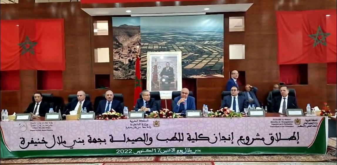 العالم 24, أعطيت اليوم الإثنين 17 اكتوبر 2022 بمقر جهة بني ملال خنيفرة، الانطلاقة الرسمية لمشروع بناء كلية الطب والصيدلة ببني ملال, وذلك بحضور كل من وزير التعليم العالي ووالي جهة بني ملال خنيفرة ورئيس الجهة وعمال الأقاليم ورئيس جامعة السلطان مولاي سليمان ببني ملال وعدد من المنتخبين والشخصيات المدنية والعسكرية.