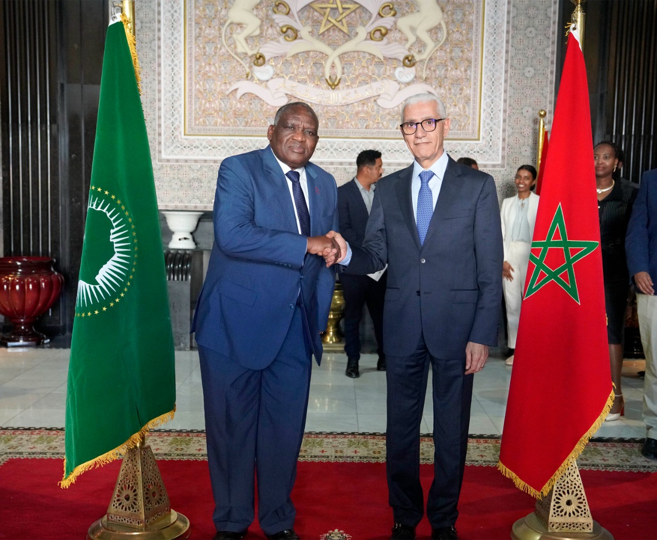 وركزت المباحثات بين الجانبين على علاقات المغرب بالاتحاد الأفريقي والرغبة الشديدة للمملكة لإعطاء دينامية جديدة لهياكل الاتحاد والتنمية بأفريقيا، تحت القيادة الرشيدة لصاحب الجلالة الملك محمد السادس نصره الله.