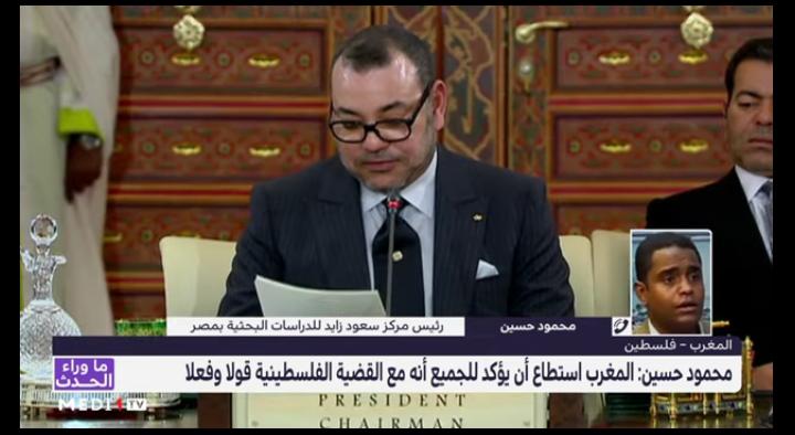 العالم24, صرح د. محمود حسين عامر رئيس مركز سعود زايد للدراسات البحثية بمصر لقناة ميدي تفي 1 إن مملكة المغرب هي البلد الوحيدة من البلاد العربية التي تحافظ علي القضية الفلسطينية وهذا ما يقوم به الملك محمد السادس في كل وقت حيث يقوم بمد بالمساعدات الاقتصادية والاجتماعية والسياسية لحماية الأراضي الفلسطينية المحتلة ويقوم بالضغط علي الحكومة الصهيونية بكل قوة لفتح المعابر الحدودية الفلسطينين ، ويحافظ علي الحق الفلسطيني بشكل كبير ويتنافس مع كل الدول العربية والأجنبية لحل القضية الفلسطينية وتحديد المصير الفلسطيني ، مع تطوير الوضع الإقتصادي في الحياة الأساسية الإقتصادية والإجتماعية والثقافية داخل المجتمع الفلسطيني مؤخرا والبحث عن حلول في نشر عملية السلام في القضية الفلسطينية