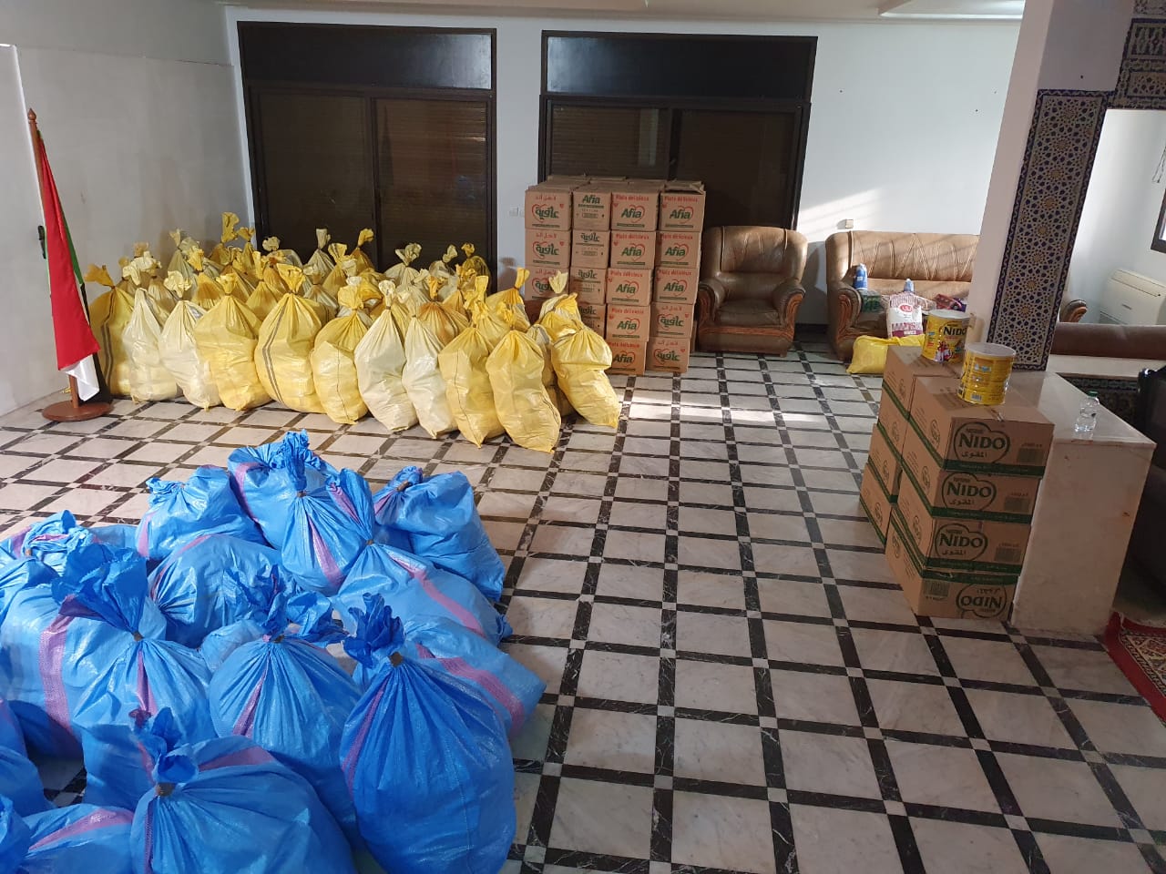 وقد تم توزيع وإيصال المساعدات مباشرة إلى المعنيين بالأمر في منازلهم، في ظروف عادية وسلسلة وتجري عملية التوزيع مع اتخاذ جميع التدابير الوقائية، وذلك التزاما بالقرارات والإجراءات الاحترازية التي أقرتها السلطات المعنية للحد من انتشار فيروس كورونا المستجد.
