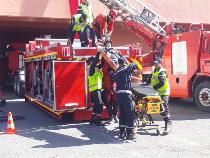 وبعد القيام بجولة في مختلف أروقة المعرض، بغرض الاطلاع على كافة التجهيزات، واللوجستيك الذي تتوفر عليه القيادة الإقليمية للوقاية المدنية لمكافحة الحرائق، والقيام بعمليات الإغاثة والإنقاذ في البحر، على الخصوص، تابع الوفد تمارين محاكاة تهم التدخل والإسعافات الأولية للضحايا، لاسيما إخماد الحريق وإنقاذ سائق محاصر بعد انقلاب سيارته.