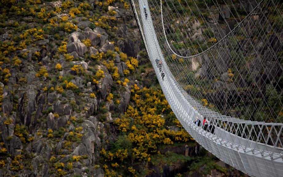 على علو 175 مترا فوق نهر “بايفا”، دشنت البرتغال أطول جسر مشاة معلق في العالم بشمال البلاد، والذي يتخطى بطوله البالغ 516 مترا الرقم القياسي السابق العائد منذ العام 2017 إلى عبارة شارل كوونن في جبال الألب السويسرية.