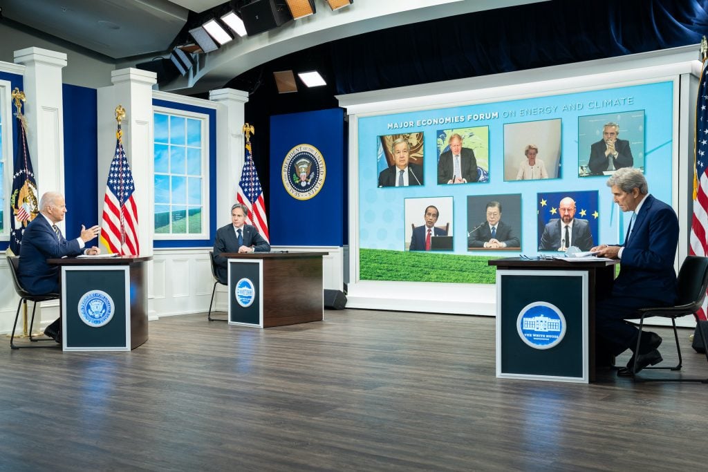 وحث بايدن نظراءه على أن يتحلوا بالطموح في وضع أهداف لخفض الانبعاثات ومنع درجة الحرارة العالمية من تجاوز 1.5 درجة مئوية فوق مستويات ما قبل الثورة الصناعية، وذلك خلال اجتماع عبر الإنترنت لمنتدى الاقتصادات الكبرى حول الطاقة والمناخ.