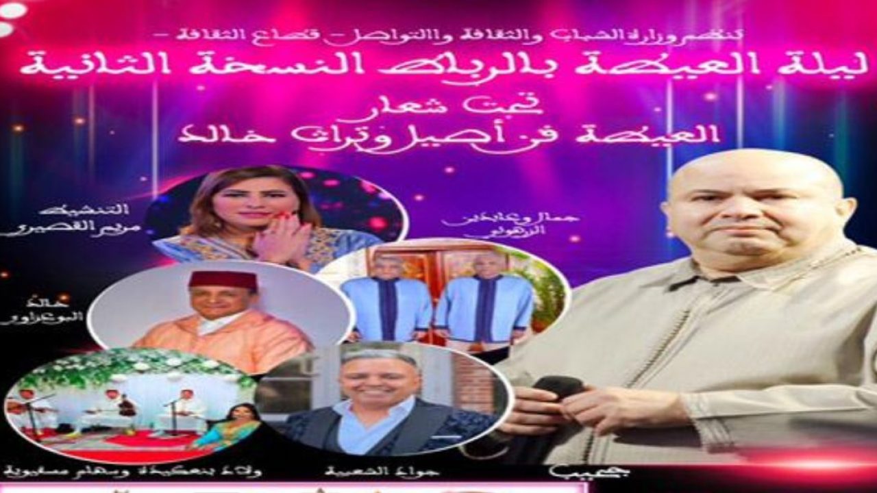 ليلة العيطة التي تنظم من طرف وزارة الثقافة بشراكة مع الشركة الوطنية للإذاعة والتلفزة ومسرح محمد الخامس، والتي اختار لها منظموها شعار “العيطة فن أصيل وتراث خالد”، وتنشط أطوارها الإعلامية “مريم القصيري” ستعرف مشاركة شيوخ هذا الفن المغربي العريق، الذين يمثلون مدن وجهات المملكة، ويأتي في طليعة الفنانين المشاركين نجم الرباط الفنان حجيب، والأخوين جمال وعابدين الزرهوني والفنان خالد البوعزاوي، إلى جانب ولاد بنعكيدة وسهام المسفيوية والفنان جواد الشعيبة.