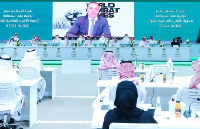 وذكرت وكالة الأنباء السعودية ، أن رئيس اللجنة الأولمبية العربية السعودية الأمير عبد العزيز بن تركي الفيصل ، وقع عقد استضافة مع نائب رئيس الجمعية العالمية للاتحادات الدولية ستيفن فوكس ، ت منح بموجبها المملكة حق تنظيم دورة الألعاب العالمية للفنون القتالية 2023.