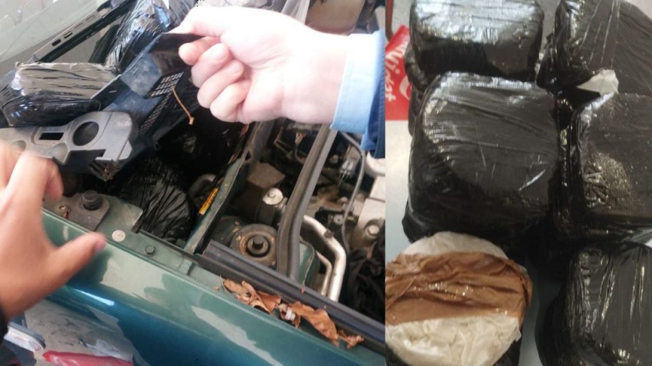 وقد مكنت عمليات الفحص بالسكانير، التي خضعت لها السيارة المسجلة بدولة الأراضي المنخفضة (هولندا)، من العثور على حقيبة مدسوسة تحت أسفل المحرك وتحتوي بداخلها على ثلاثة عشر كيلوغراما من مواد يشتبه في كونها مخدرات صلبة.