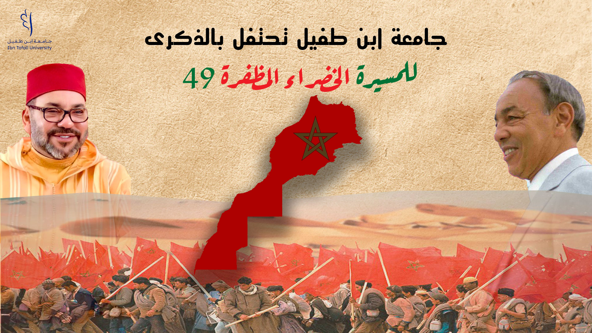 بمناسبة حلول الذكرى التاسعة والأربعين للمسيرة الخضراء المظفرة التي جسدت، باعتبارها ملحمة تاريخية، أروع صور التلاحم بين العرش العلوي المنيف والشعب المغربي الوفي من أجل استكمال الاستقلال الوطني وتحقيق الوحدة الترابية المقدسة، يتشرف خديم الأعتاب الشريفة السيد محمد العربي كركب، رئيس جامعة ابن طفيل بالقنيطرة، أصالة عن نفسه ونيابة عن كافة العاملين بهذه الأخيرة، بتقديم فروض الطاعة والولاء اللائقة بالمقام العالي بالله، وبأصدق عبارات التهاني وأسمى المتمنيات، إلى السدة العالية بالله صاحب الجلالة الملك محمد السادس نصره الله وأيده، سائلا المولى عز وجل أن يديم على جلالته نعمة الصحة والعافية، وأن يعيد عليه هذه المناسبة الوطنية الغالية بالخير واليمن والبركات، وعلى وطننا الحبيب بمزيد من الرفعة والنماء.
