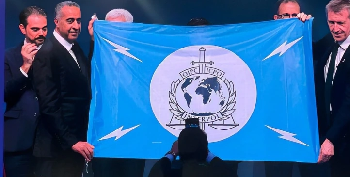 استلام المغرب لعلم الأنتربول إيذانا باحتضان الدورة الثالثة والتسعين للمنظمة الدولية للشرطة الجنائية أنتربول.