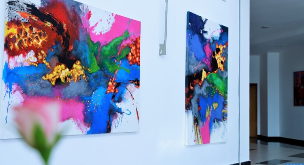 واعتبر الفنان أن “لوحات هذا المعرض تتضمن كتلا لونية على شكل انفجارات”.