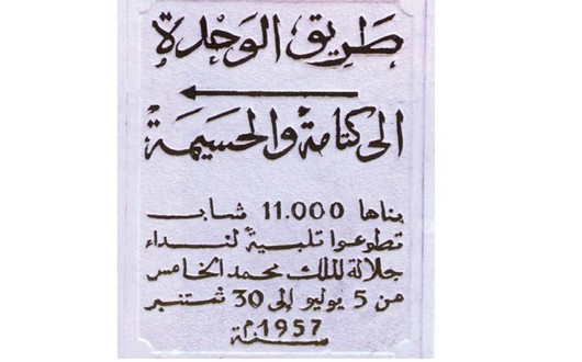 وفي مستهل شهر أكتوبر 1957، كان المغرب على موعد مع الحدث التاريخي المبشر بانتهاء أشغال طريق الوحدة، والذي تكلل بخطاب جلالة المغفور له محمد الخامس في حفل استعراض المتطوعين. وقال جلالته معتزا بهذا الانجاز التاريخي: “بفضل هذه الطريق المباركة، تضاعفت وسائل الاتصال بين الشمال والجنوب، وتم التوحيد بينهما على صورة أكمل، ذلك التوحيد الذي طالما كافحنا من أجله وتحرقنا شوقا إلى استرجاعه”.