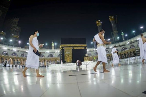 وأدى الحجاج طواف القدوم مع الحفاظ على مسافة التباعد الاجتماعي للوقاية من كورونا، إذ حددت السلطات مسارات للطواف، مع وضع علامات لضمان حفاظ ضيوف الرحمن على هذه المسافات.
