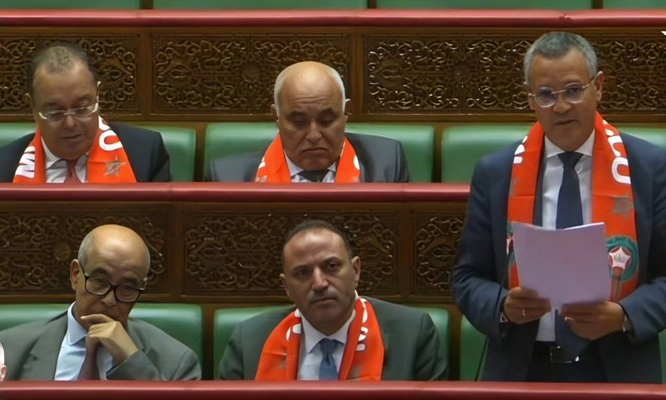 في مشهد مفعم بروح الفخر الوطني، حرص أعضاء مجلس المستشارين، رفقة الوزير ورئيس الجلسة، على ارتداء وشاح المنتخب المغربي، في gesture رمزية للاحتفاء بتتويج “أشبال الأطلس” بكأس العالم لأقل من 20 سنة.