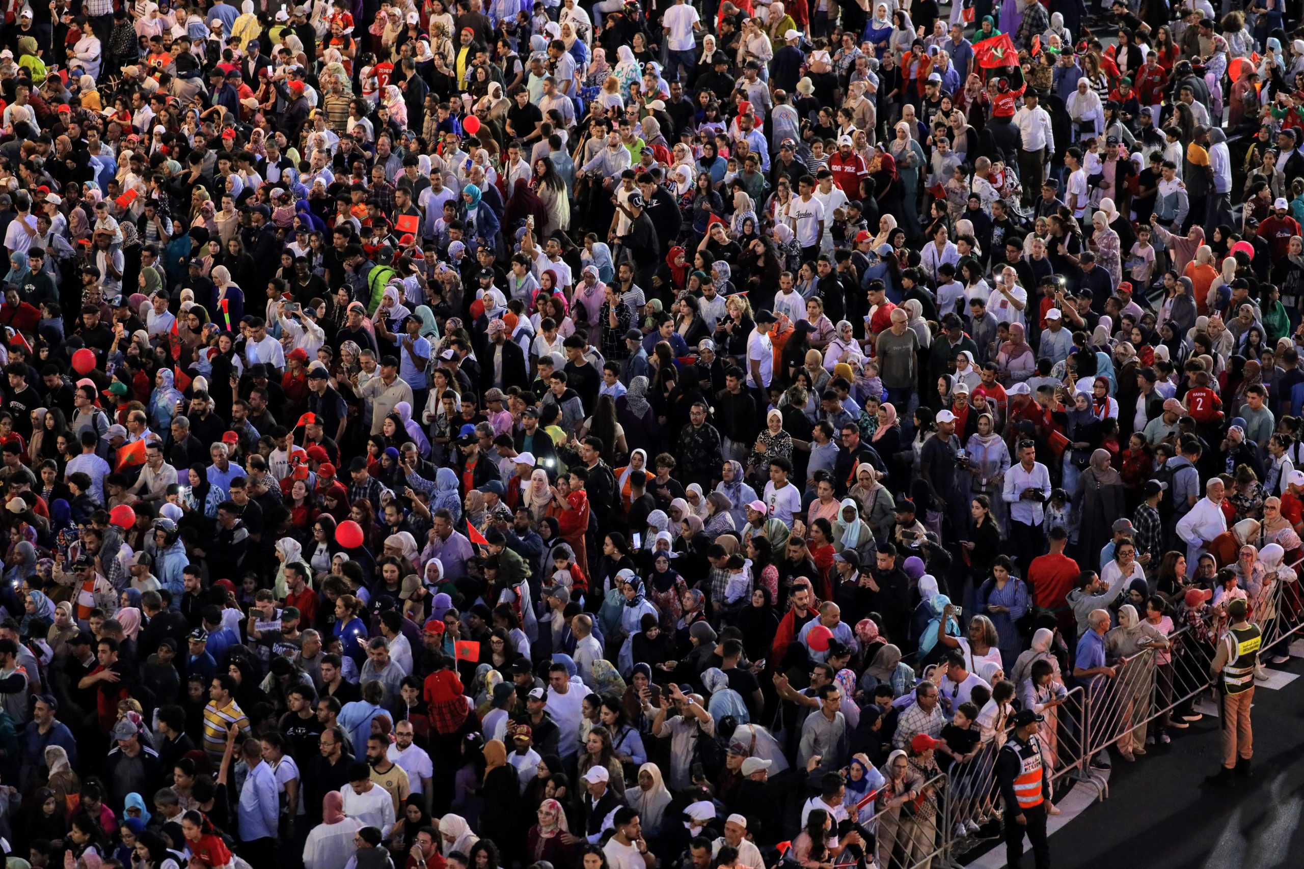 وتدفقت أعداد هائلة من المواطنين من مختلف أنحاء المملكة إلى الشوارع الرئيسية للعاصمة، خاصة شارع محمد الخامس وساحة البريد، حيث ارتفعت الأعلام الوطنية وتعالت الهتافات والأهازيج احتفاءً بأشبال الأطلس.