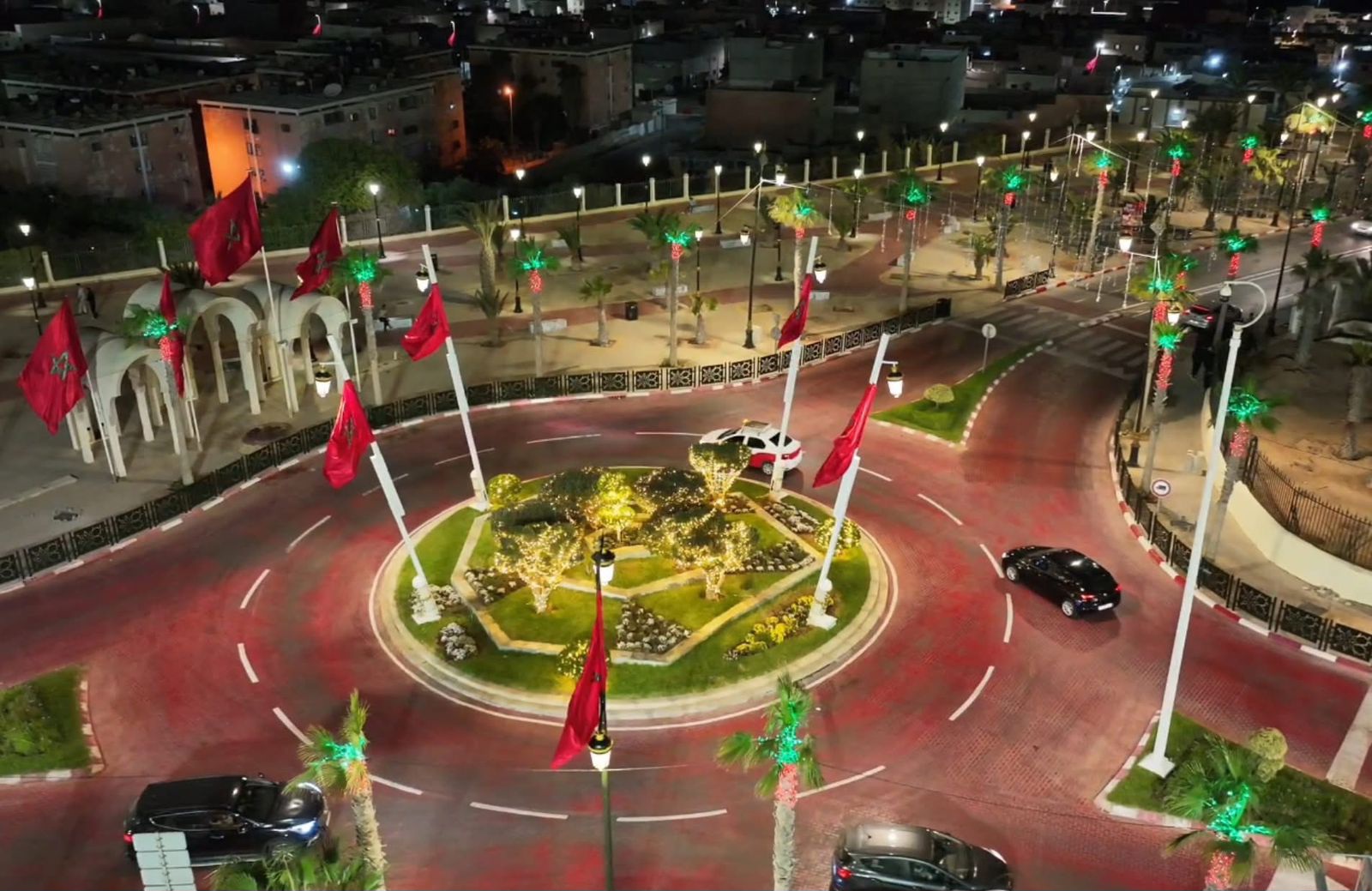 فقد ازدانت المدينة بحلة ضوئية خلابة امتدت على طول محاورها الكبرى، من شارع الحسن الثاني إلى شارع مكة والمدينة المنورة ومحج محمد السادس، وصولاً إلى ساحتي المشور وأم السعد، حيث انتشرت المصابيح والأقواس المضيئة في تناغم فني يعكس عمق الارتباط الوطني وبهجة الاحتفال بملحمة استثنائية صنعت مجد المغرب ووحدته الترابية.