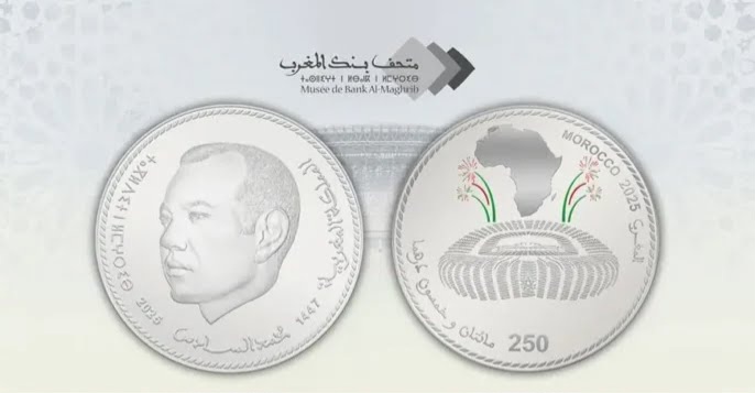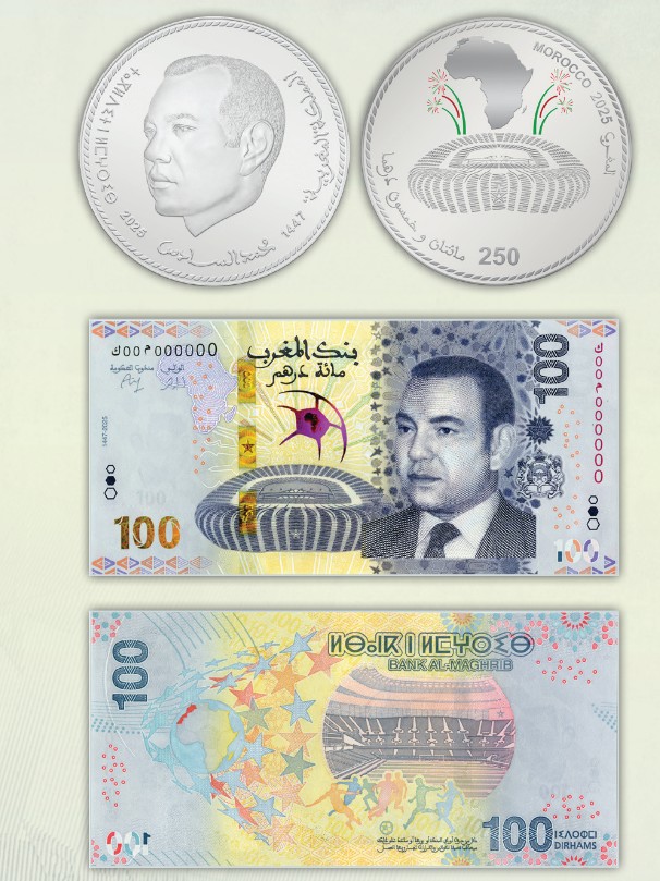 كشف بنك المغرب، اليوم الاثنين 22 دجنبر، عن طرح إصدارين تذكاريين جديدين يتمثلان في قطعة نقدية فضية من فئة 250 درهمًا، وورقة بنكية خاصة من فئة 100 درهم، وذلك تخليدًا لاحتضان المملكة المغربية للدورة الخامسة والثلاثين من نهائيات كأس أمم إفريقيا «المغرب 2025».