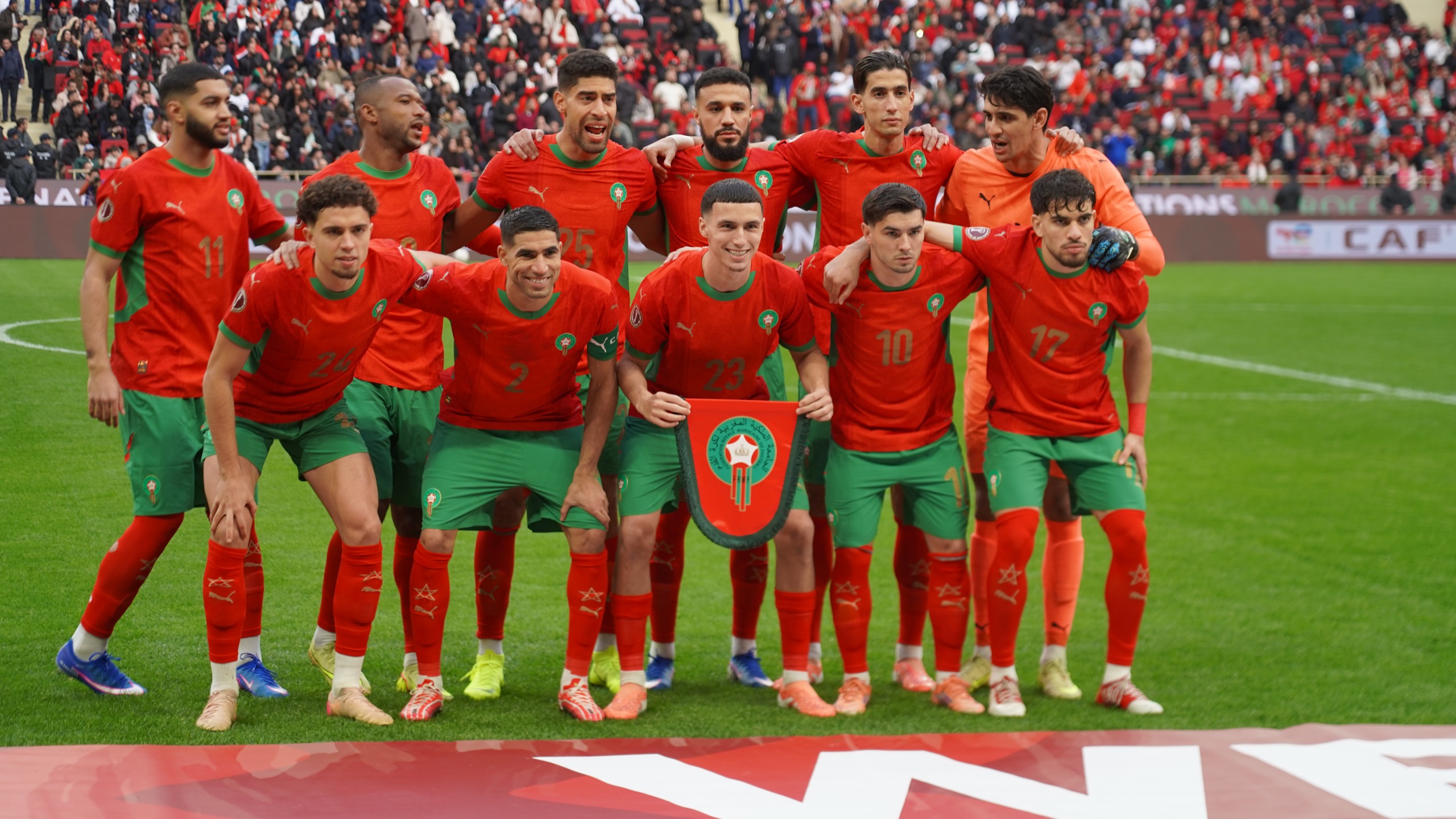 وضمت التشكيلة الأساسية الأسماء التالية: ياسين بونو في حراسة المرمى، وأمامـه كل من نصير مزراوي، نايف أكرد، آدم ماسينا، وأشرف حكيمي، فيما شغل وسط الميدان نائل العيناوي وبلال الخنوس وإسماعيل صيباري، بينما قاد الخط الهجومي كل من إبراهيم دياز، عبد الصمد الزلزولي، وأيوب الكعبي.