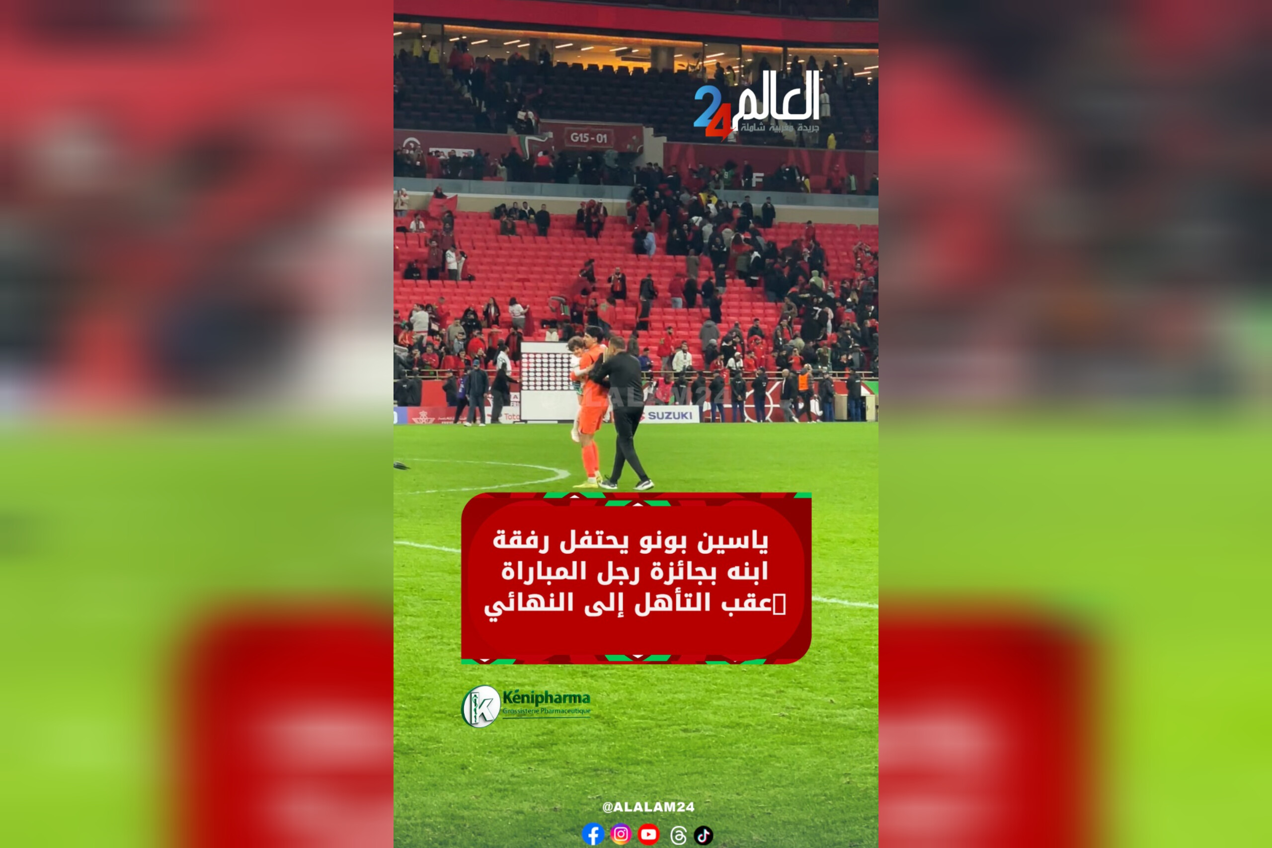 ياسين بونو يحتفل رفقة ابنه بجائزة رجل المباراة عقب التأهل إلى النهائي