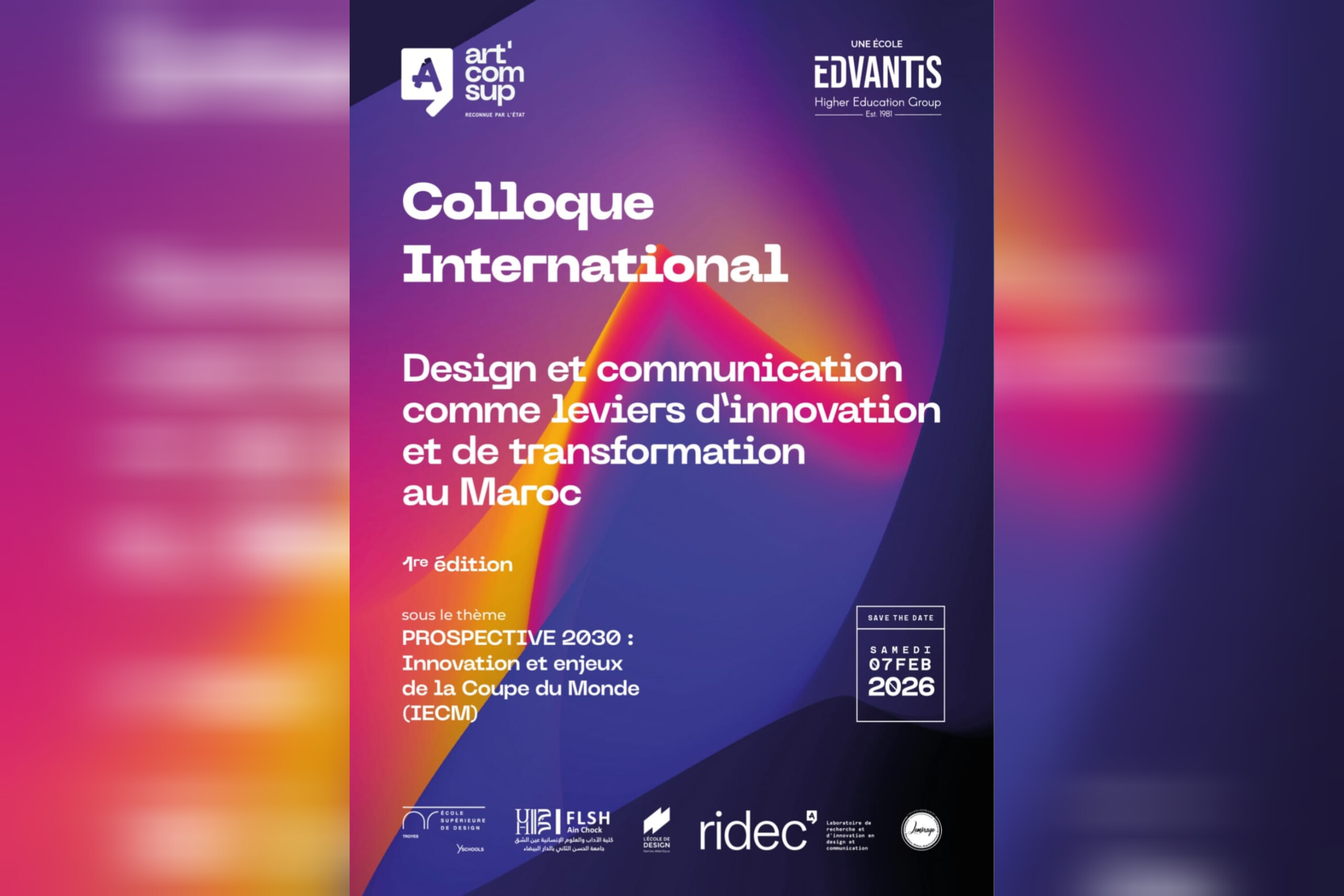 Le Laboratoire de Recherche et d’Innovation en Design et Communication (RIDEC) d’Art’Com Sup organise, en partenariat avec le laboratoire LEMERAGE de la FLSHAC – Université Hassan II de Casablanca, et avec la participation de Y Schools, la première édition du Colloque international « Prospective 2030 : Innovation et Enjeux de la Coupe du Monde (IECM) », qui se tiendra le samedi 7 février 2026 à Casablanca.