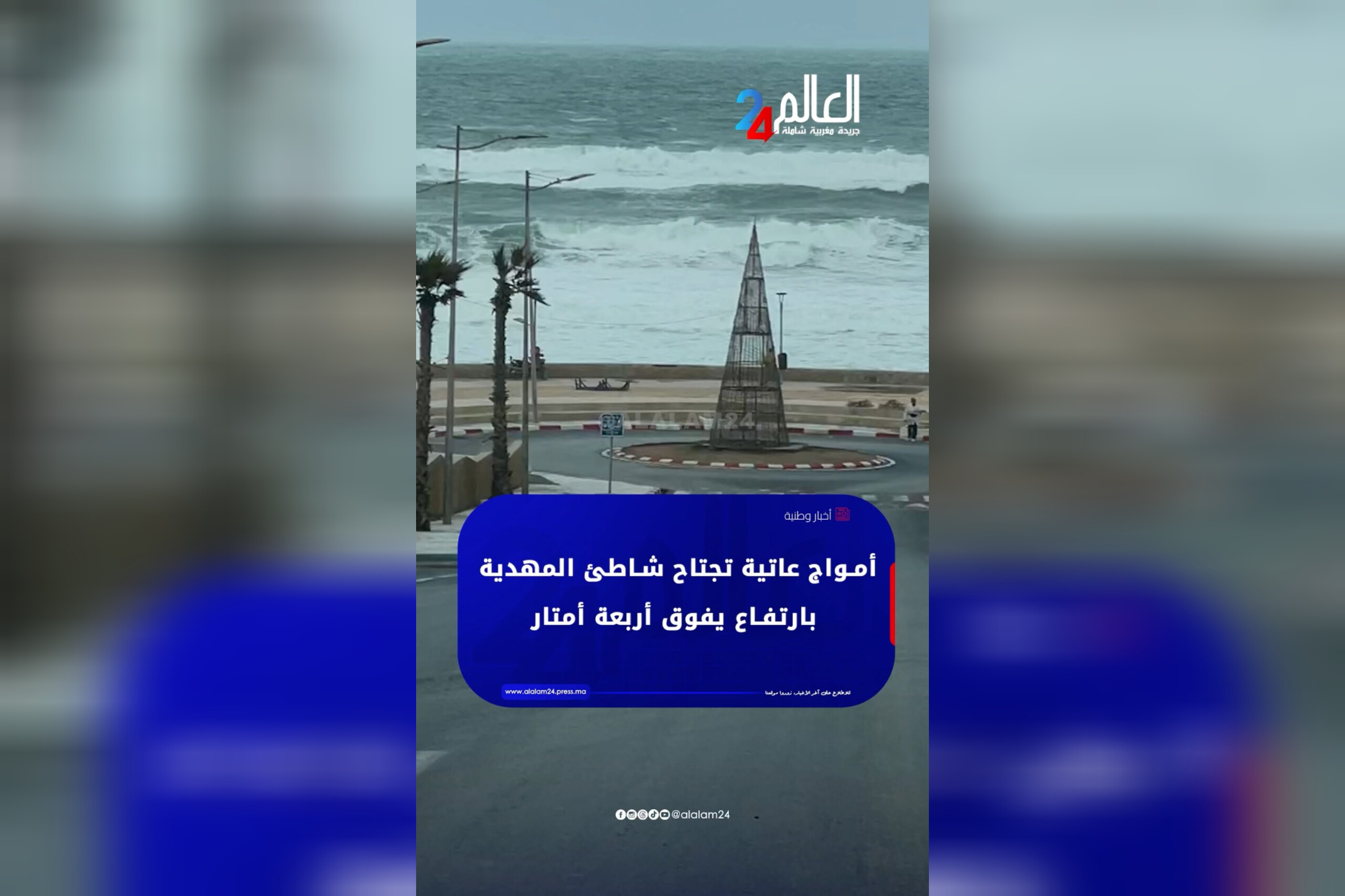 أمواج عاتية تجتاح شاطئ المهدية بارتفاع يفوق أربعة أمتار