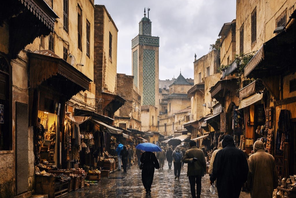 تحولت أزقة فاس العتيقة، عقب أمطار الخير، إلى مشاهد رائعة، حيث غمرت المياه بعض الشوارع والدروب، وامتزجت انعكاسات المباني العتيقة بحركة المياه في لوحة بصرية لافتة شدت انتباه الزوار وساكنة المدينة على حد سواء.