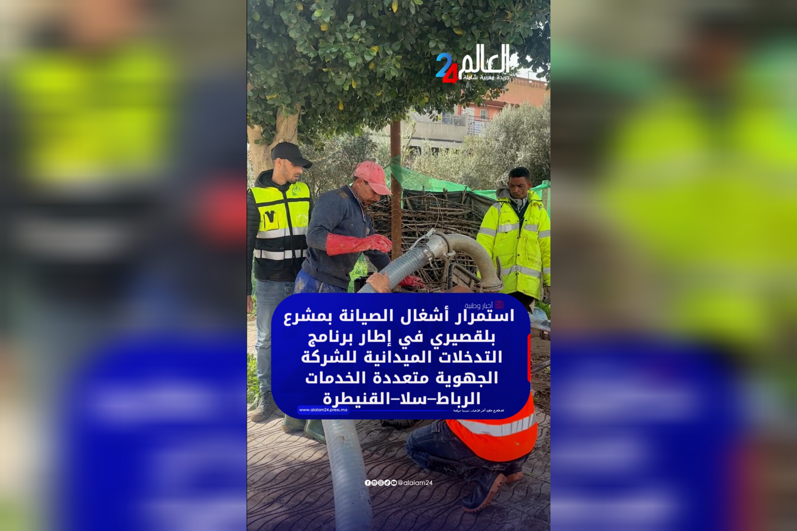استمرار أشغال الصيانة بمشرع بلقصيري في إطار برنامج التدخلات الميدانية للشركة الجهوية متعددة الخدمات الرباط–سلا–القنيطرة