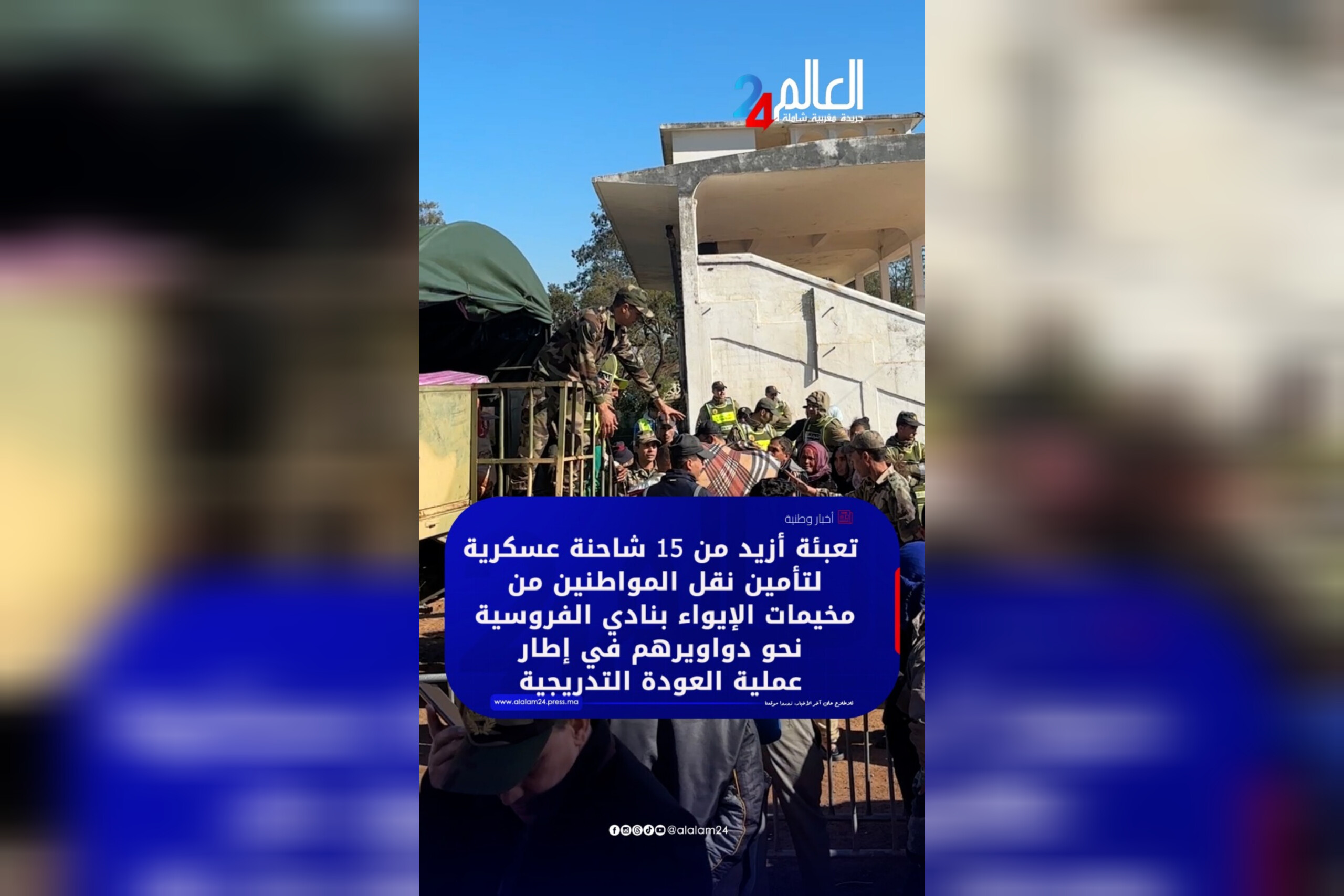 الرئيسيةصوت وصورةتعبئة أزيد من 15 شاحنة عسكرية لتأمين نقل المواطنين من مخيمات الإيواء بنادي الفروسية نحو دواويرهم في إطار عملية العودة التدريجية تعبئة أزيد من 15 شاحنة عسكرية لتأمين نقل المواطنين من مخيمات الإيواء بنادي الفروسية نحو دواويرهم في إطار عملية العودة التدريجية شارك Alalam-24 الإثنين 16 فبراير 2026 شارك