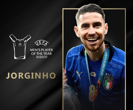 فاز الإيطالي جورجينيو لاعب تشيلسي الإنجليزي بجائزة أفضل لاعب في أوروبا، بعدما توج مع فريقه بلقب دوري أبطال أوروبا، في الموسم الماضي كما ساهم بقدر كبير في فوز منتخب بلاده بلقب كأس أمم أوروبا (يورو 2020). وتم الإعلان عن الجائزة ،اليوم الخميس، على هامش حفل مراسم سحب قرعة الدور الأول (دور المجموعات) لبطولة دوري أبطال أوروبا لكرة القدم لموسم 2021-2022، والتي أجريت في مدينة اسطنبول التركية.