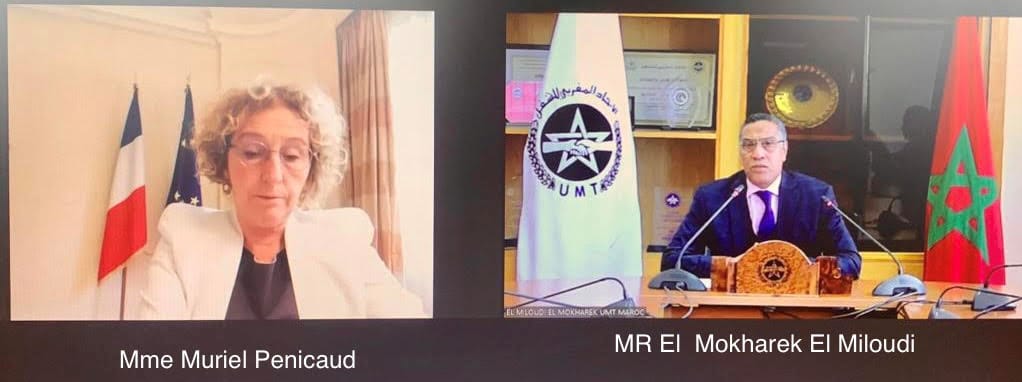 قد الأمين العام للاتحاد المغربي للشغل الأخ الميلودي المخارق، يوم 01 دجنبر 2021 لقاء عن بعد مع السيدة Muriel Penicaud، وزيرة العمل والتشغيل والإدماج في الحكومة الفرنسية سابقا والسفيرة الدائمة لفرنسا لذى منظمة التعاون والتنمية الاقتصادية (OCDE) ، بطلب من هذه الأخيرة، تمحور حول ترشحها لمنصب المديرة العامة لمنظمة العمل الدولية بجنيف، باعتبار الاتحاد المغربي للشغل، المنظمة النقابية التي تتمتع بحق التصويت.