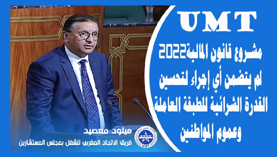 إننا في الاتحاد المغربي للشغل ومن خلال دراسة مستفيضة لمشروع القانون المالية لسنة 2022 نسجل ما يلي: