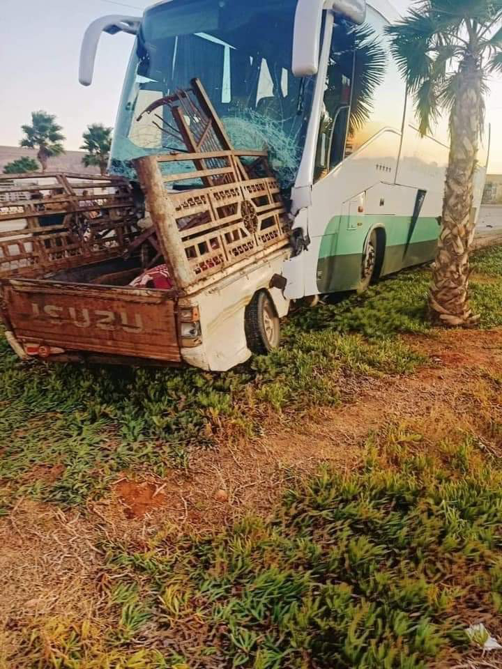 وأوضح المصدر، أن الحادث وقع إثر تصادم سيارة من نوع “بيكوب” وحافلة لنقل المسافرين، ما أدى إلى تحطّم السيارة بالكامل وانقلاب الحافلة، فيما لا تزال الأسباب المؤدية إلى وقوع هذا التصادم “غير معروفة”.