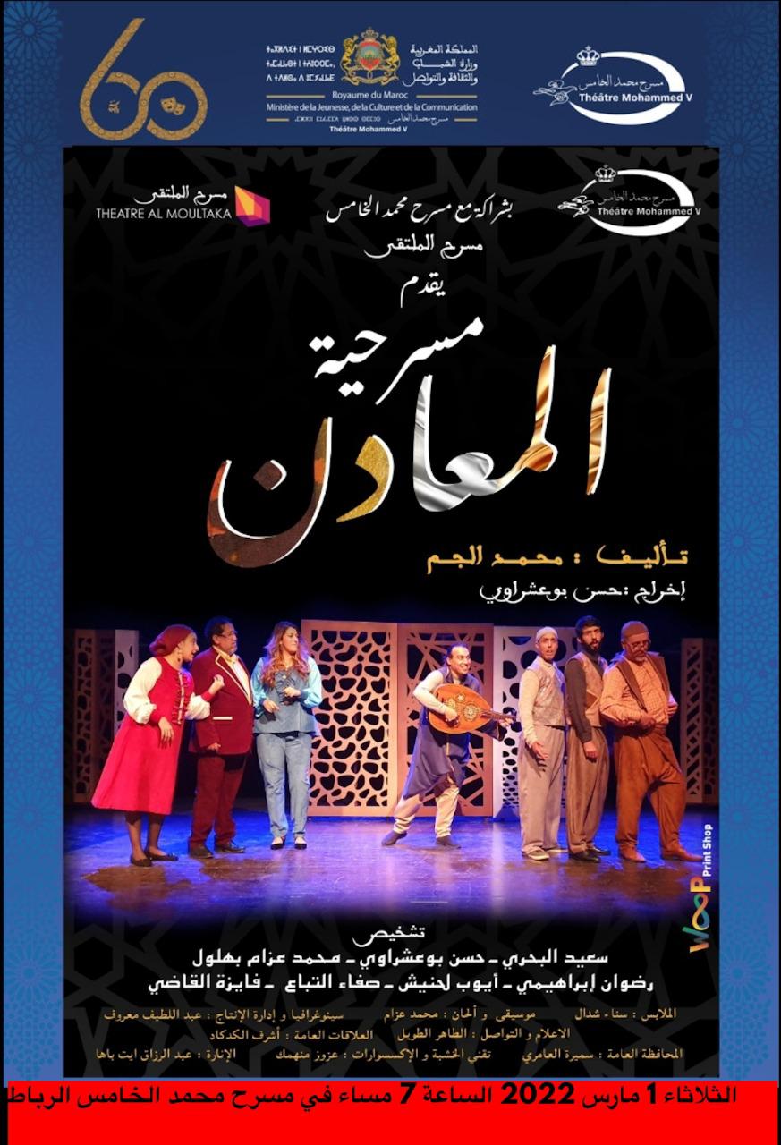 يقدم “مسرح الملتقى” بشراكة مع مسرح محمد الخامس العرض الأول لمسرحية “المعادن”، تأليف محمد الجم، وإخراج حسن بوعشراوي، يوم الثلاثاء 1 مارس 2022، في الساعة السابعة مساء بمسرح محمد الخامس بالرباط.