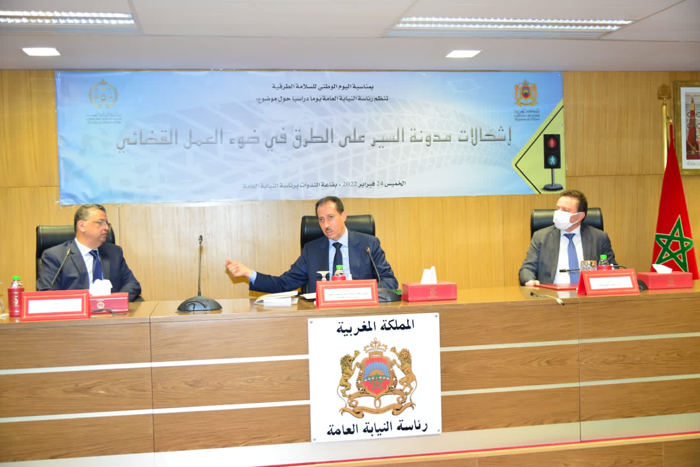 يطيب لي أن أرحب بكم في رحاب مقر رئاسة النيابة العامة الذي يحتضن أشغال هذا اليوم الدراسي الهام، وهي مناسبة أغتنمها لأعبر لكم عن عميق سعادتي لمشاركتكم افتتاح أشغاله بمناسبة تخليد اليوم الوطني للسلامة الطرقية الذي يصادف 18 فبراير من كـل سنة، وهو موعد كمـا تعلمون جاء بناء على التـفاتـة مولـوية إثر ترؤس جــلالة الملك محمد السادس أعز الله أمره لاجتماع اللجنة الوزارية للسلامة الطرقية يوم 18 فبراير 2005، وتعليـماته السـامـيـة باتخاذ جميع التدابير الكفيلة للتخفيض من عدد حوادث السير والحد من عواقبها، مما يؤكد ويعزز بالغ اهتمام جلالته بهذا الموضوع.