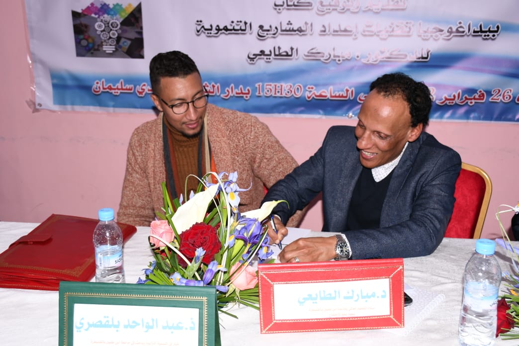 وقد حضي اللقاء بشرف استقبال الدكتور والاستاذ الجامعي المقتدر امبارك الطايعي لتقديم المولود المعرفي الجديد كتاب ” بيداغوجيا تقنيات إعداد المشاريع التنموية” لمؤلفه الدكتور مبارك الطايعي الأستاذ الجامعي والخبير في السوسيولوجيا القروية والتنمية بجامعة ابن طفيل بالقنيطرة.