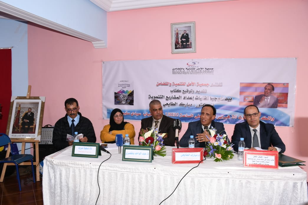 نظمت جمعية الامل للتنمية والتضامن حفل توقيع كتاب بيداغوجيا تقنيات اعداد المشاريع التنموية للدكتور مبارك الطايعي هذا اللقاء الذي ياتي في اطار في اطار انفتاح الجامعة على المحيط الاقتصادي والاجتماعي وانخراطها في المبادرات والاوراش التنموي.