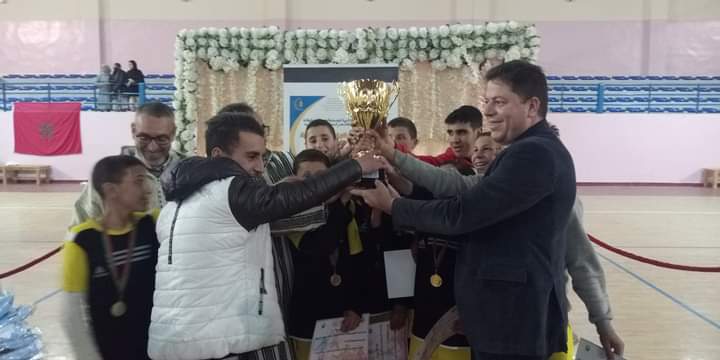و شهد حفل الختام حضور المدير الإقليمي لمديرية التعليم و وفد مرافق له، حيث أعطى انطلاقة المقابلات النهائية في كرة القدم إناث والتي فاز بها فريق إعدادية الحسن الثاني، فيما عاد لقب الذكور إلى جمعية حي السد”.
