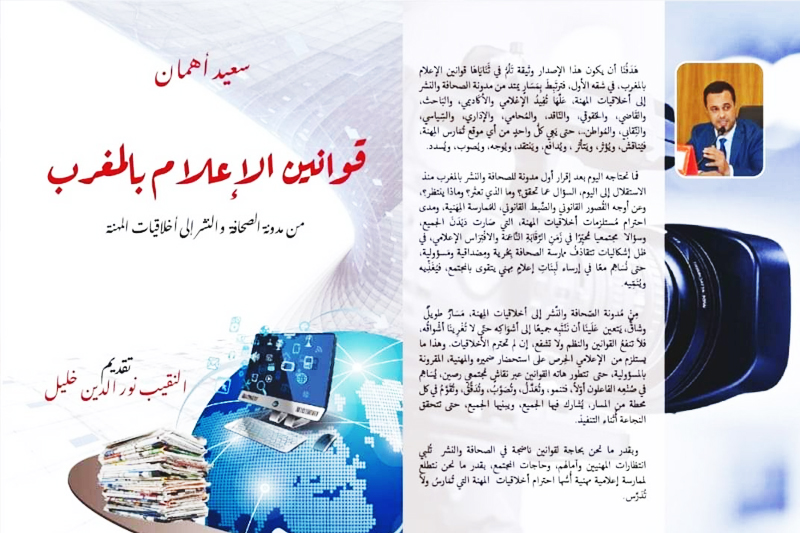 صدر حديثا للباحث سعيد أهمان، كتاب جديد بعنوان “قوانين الإعلام بالمغرب، من مدونة الصحافة والنشر إلى أخلاقيات المهنة”.